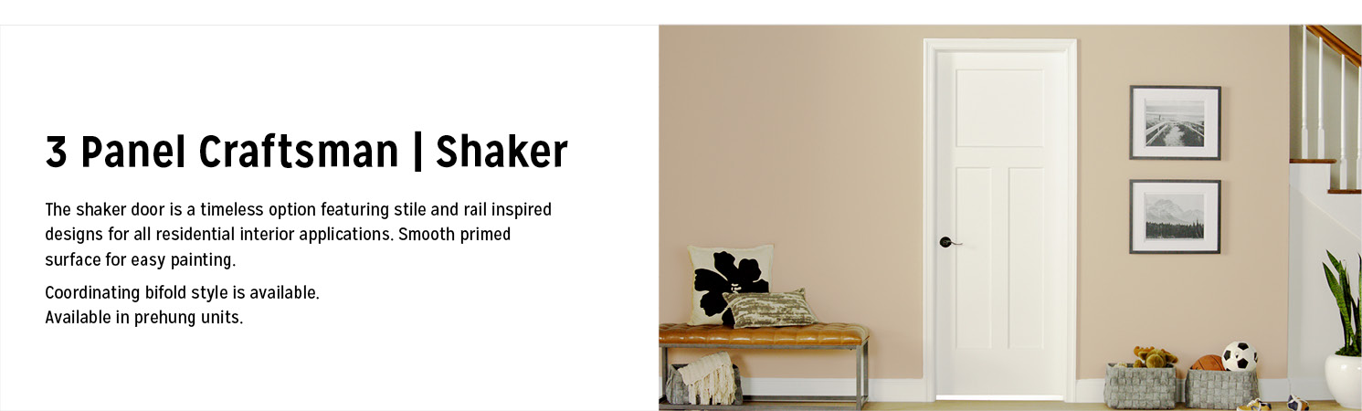 3 Panel Craftsman Shaker | Hollow Core Single Prehung Interior Door
