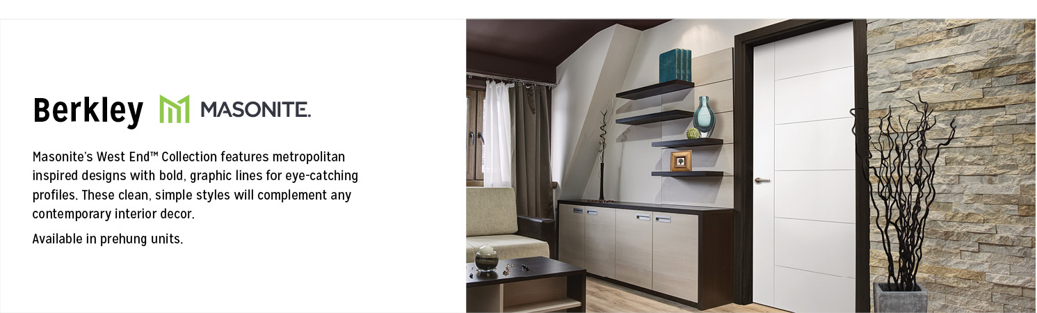 Masonite's West End Collection features metropolitan inspired designs with bold, graphic lines for eye-catching profiles. These clean, simple styles will complement any contemporary interior decor. West End doors are very affordable, giving you the most value for a modern look. For increased privacy and sound reduction, choose the solid core option. Primed, smooth surface is ready to paint.