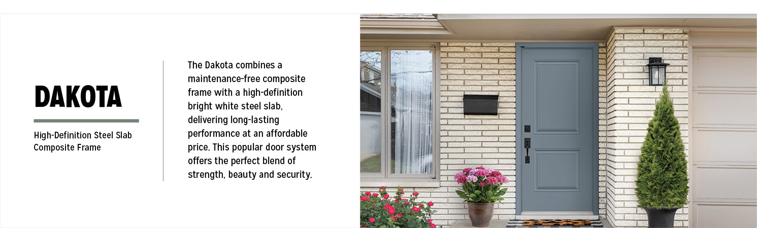 The Dakota combines a maintenance-free composite frame with a high-definition bright white steel slab, delivering long-lasting performance at an affordable price. This popular door system offers the perfect blend of strength, beauty and security.